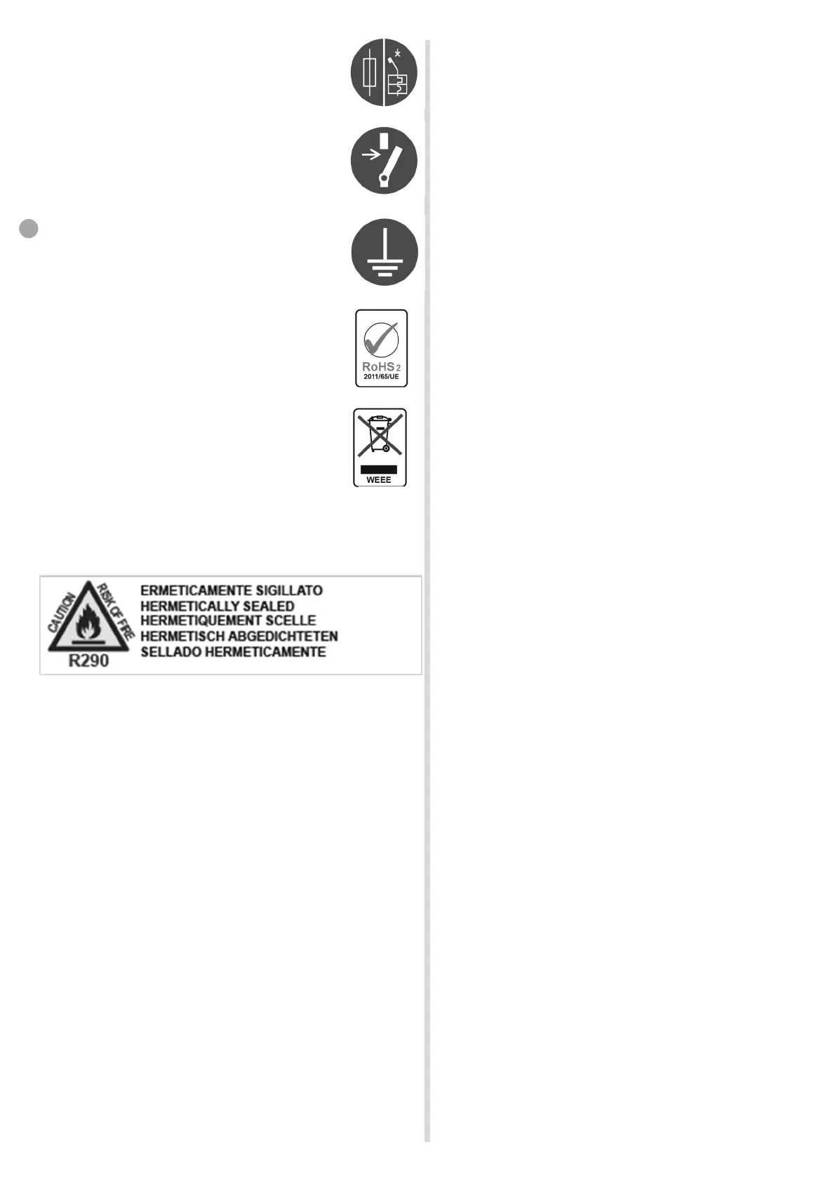 Signal: Enthält brennbares Gas; Spezifikation Kältemittel (Abb.I/15)