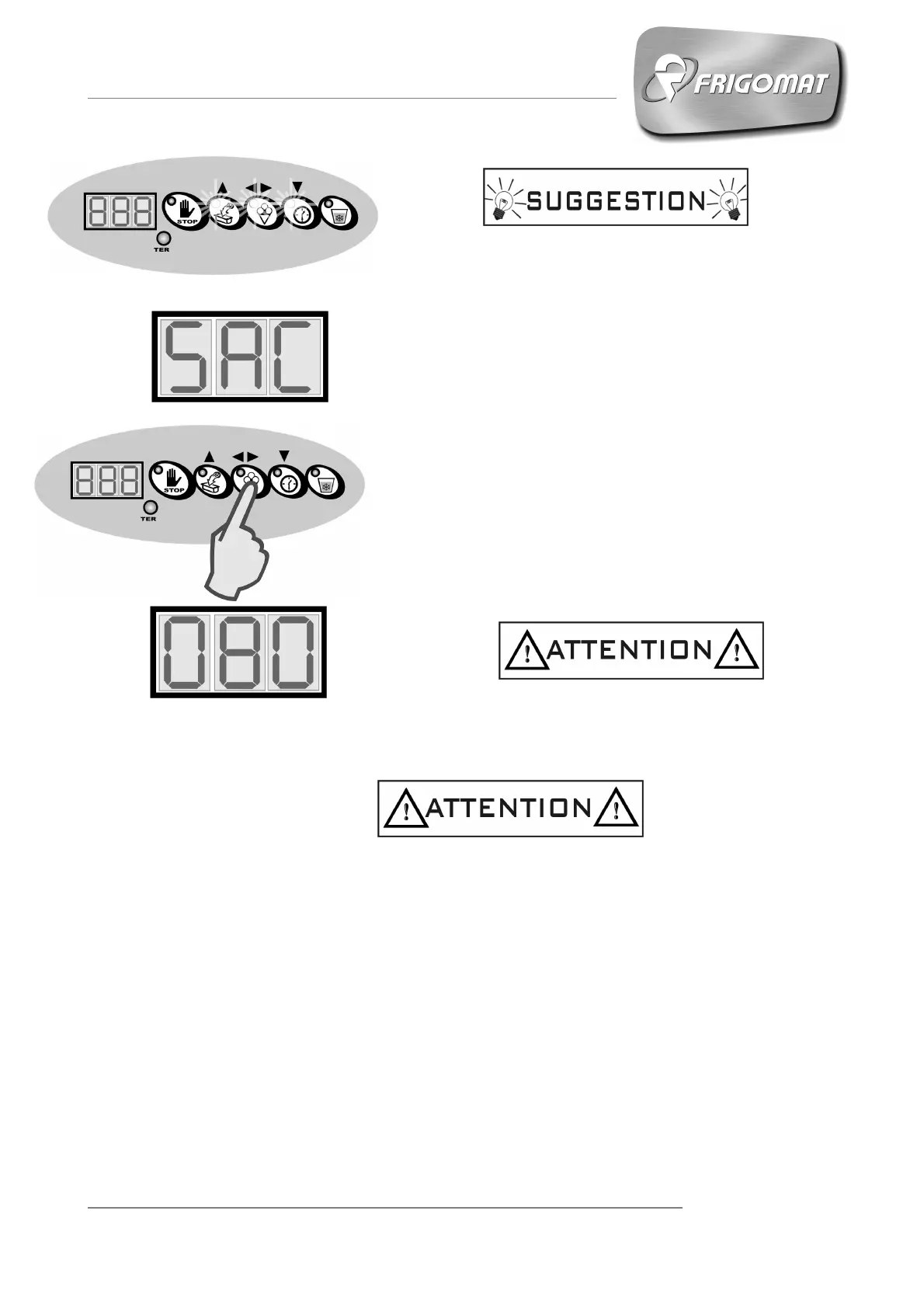 - The LEDs of the UP, Confirm and DOWN keys light up and the SAC message relative
