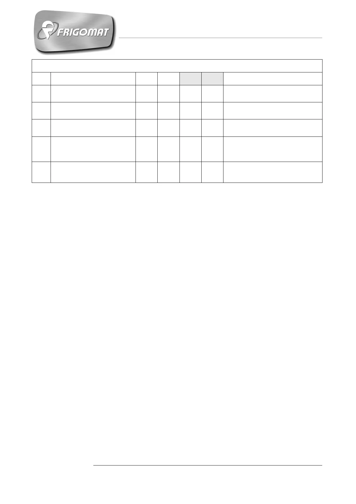 "MEB²" (**) BOARD PROGRAMMING TABLE – continue –