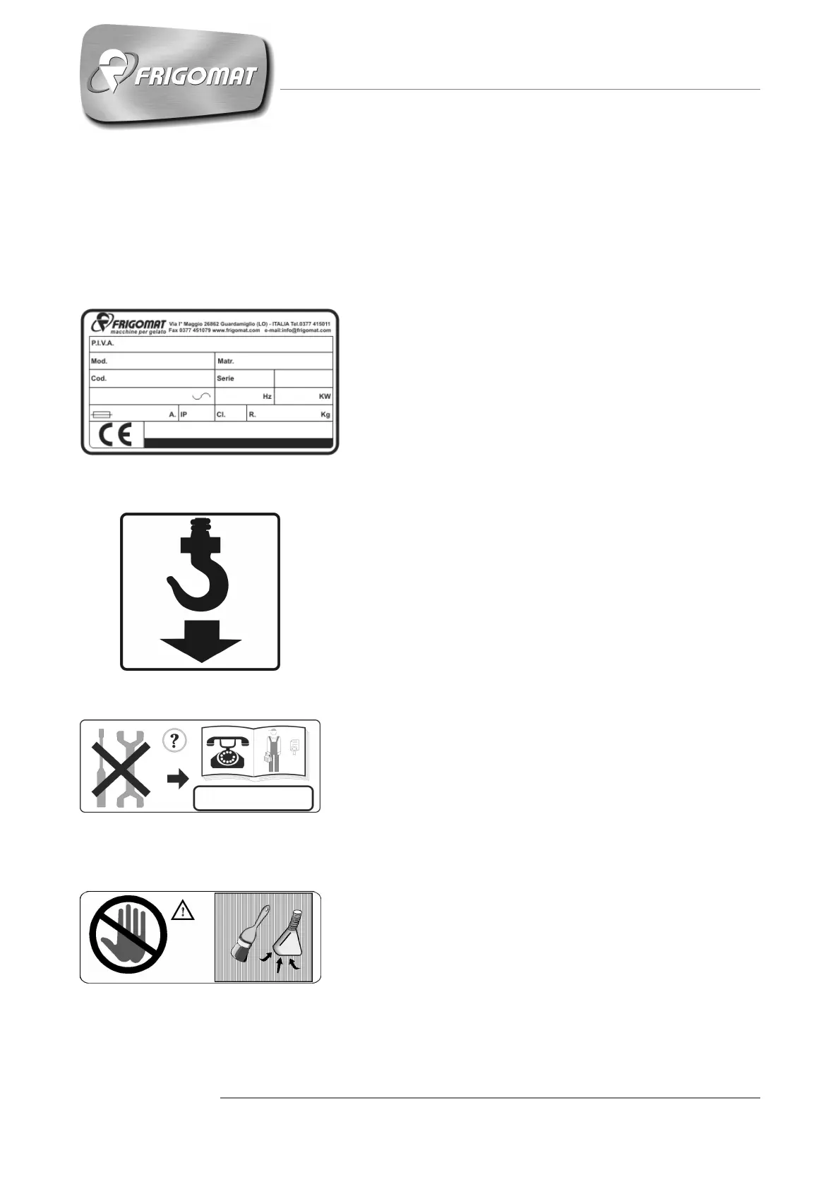 La machine est dotée d’une plaque et de pictogrammes; la connaissance de ceux-ci ainsi