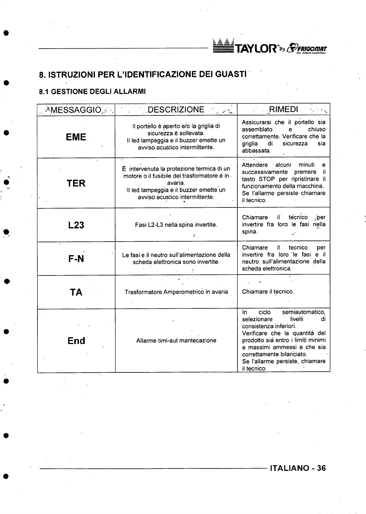 8. ISTRUZIONI PER L’IDENTIFICAZIONE DEI GUASTI