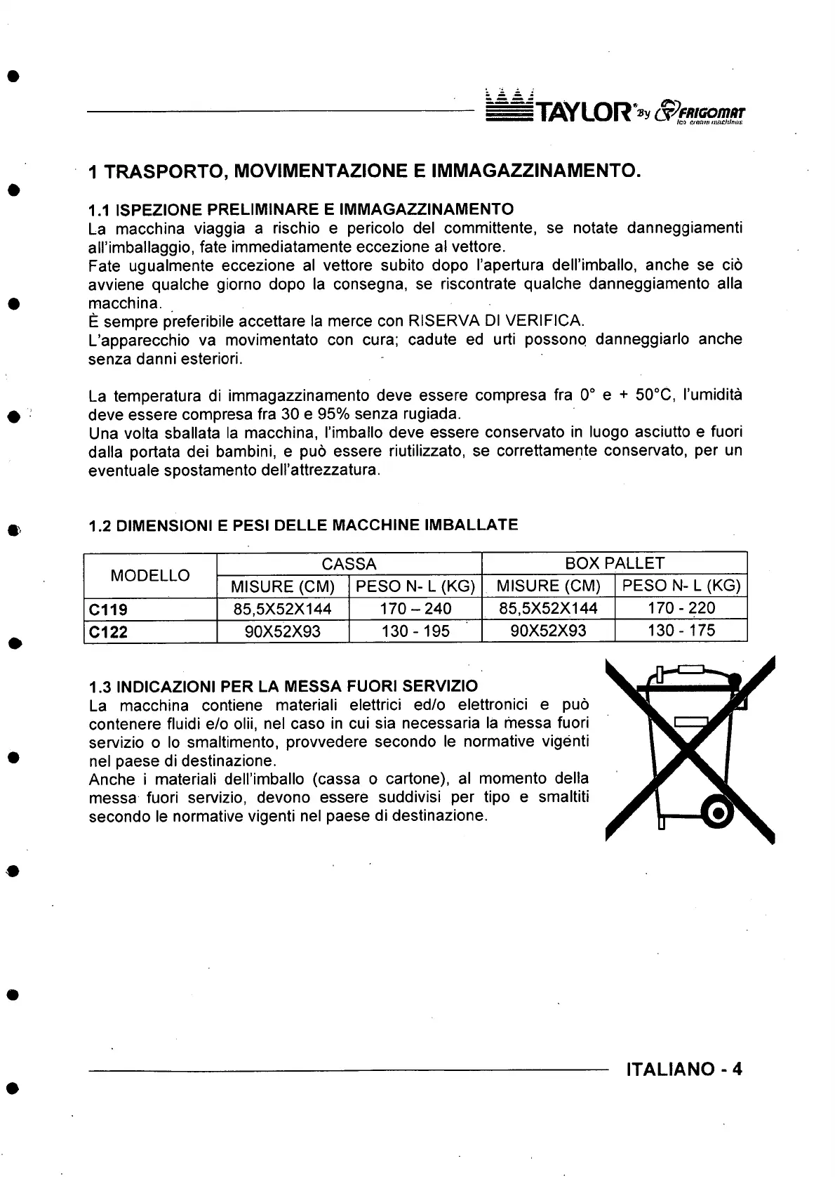 1.2 DIMENSIONI E PESI DELLE MACCHINE IMBALLATE