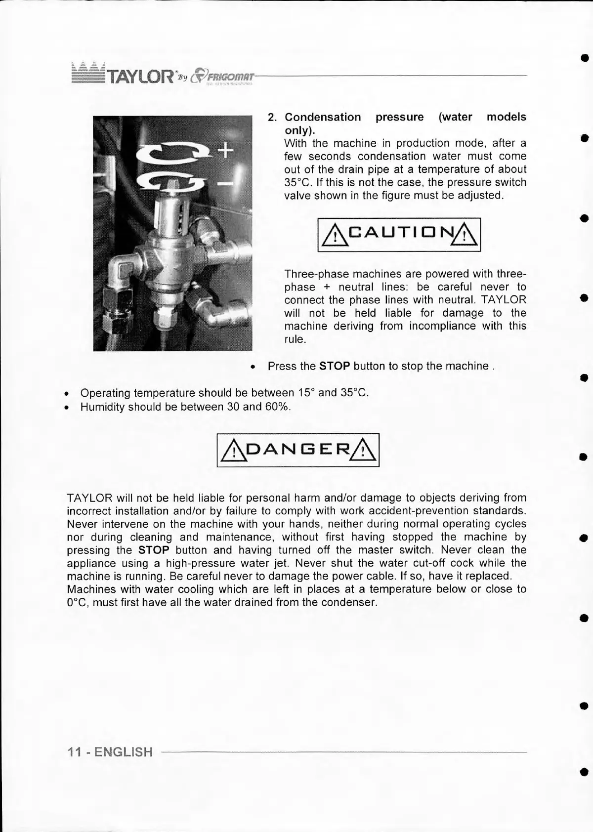 35®C. If this is not the case, the pressure switch