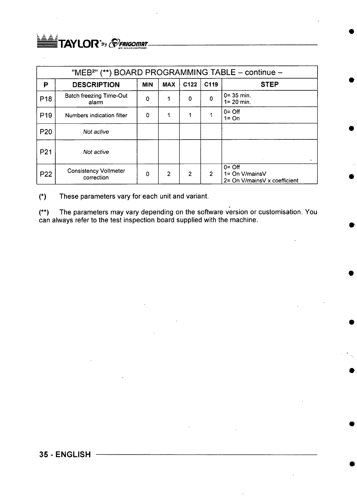 "MEB^" (**) BOARD PROG RAM MING TABLE - continue -