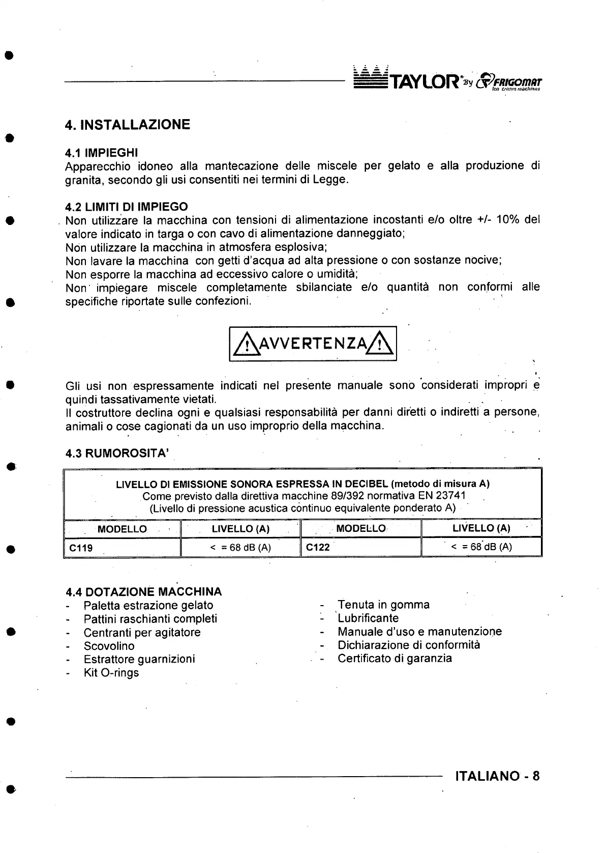 4.4 DOTAZIONE MACCHINA