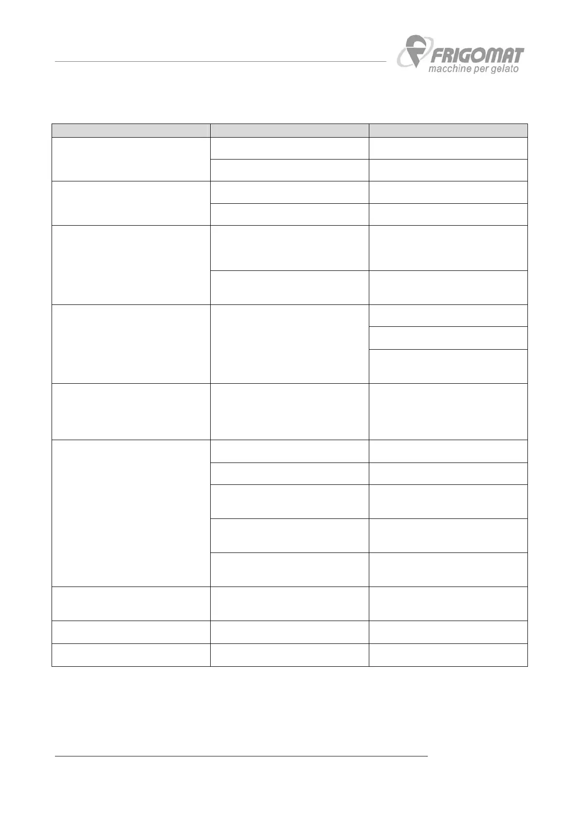 Anomalia impianto frigorifero Chiamare il tecnico