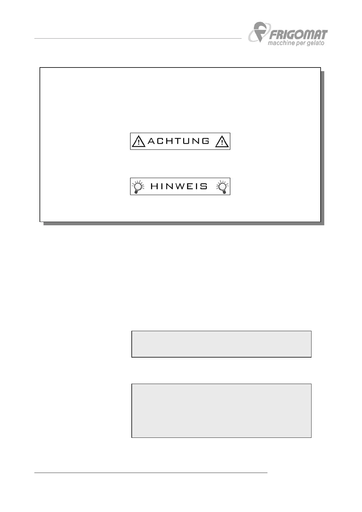 Wir raten Ihnen, bevor Sie die Ihre FRIGOMAT Maschine benutzen, aufmerksam