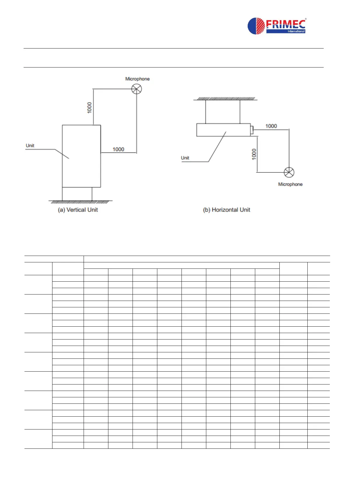 2. Microphone position: 1m in front and 1m below the unit.