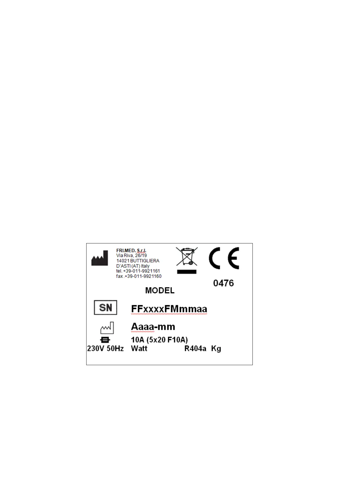 All relevant data referring to FRI.MED products can be found on the data label visible on the rear