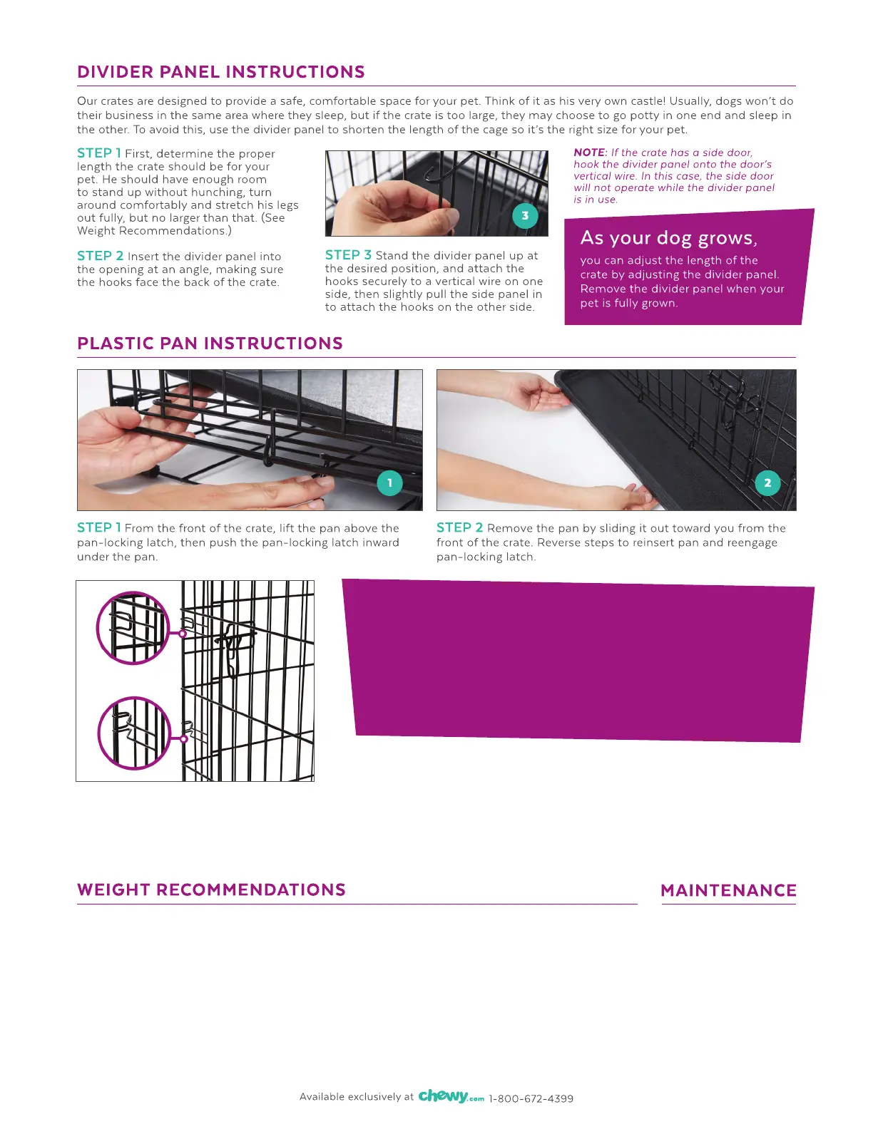 For your pet’s safety, please follow the recommended weight limitations for each crate model.