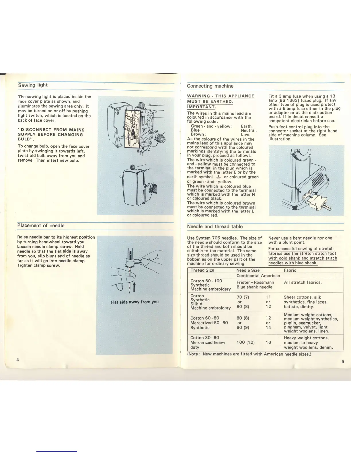 Frister Rossmann 503 - Sewing Light and Needle Placement; Sewing Light; Placement of Needle