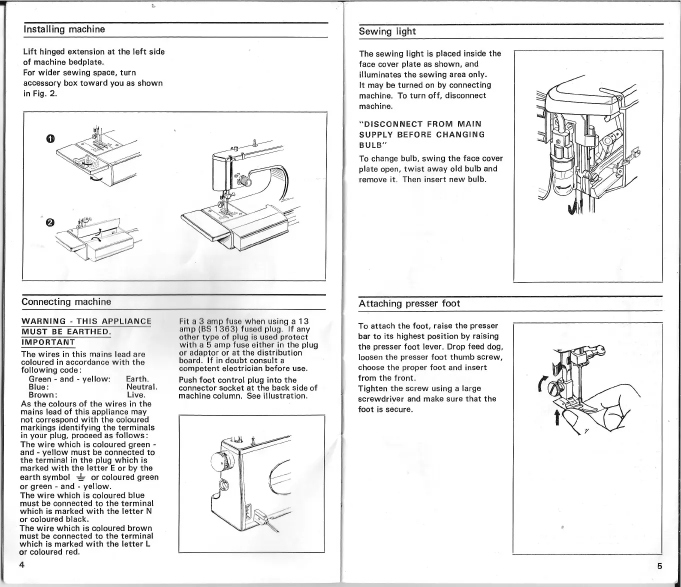 Frister Rossmann CUB 2 - Installing Machine; Connecting Machine; Sewing Light