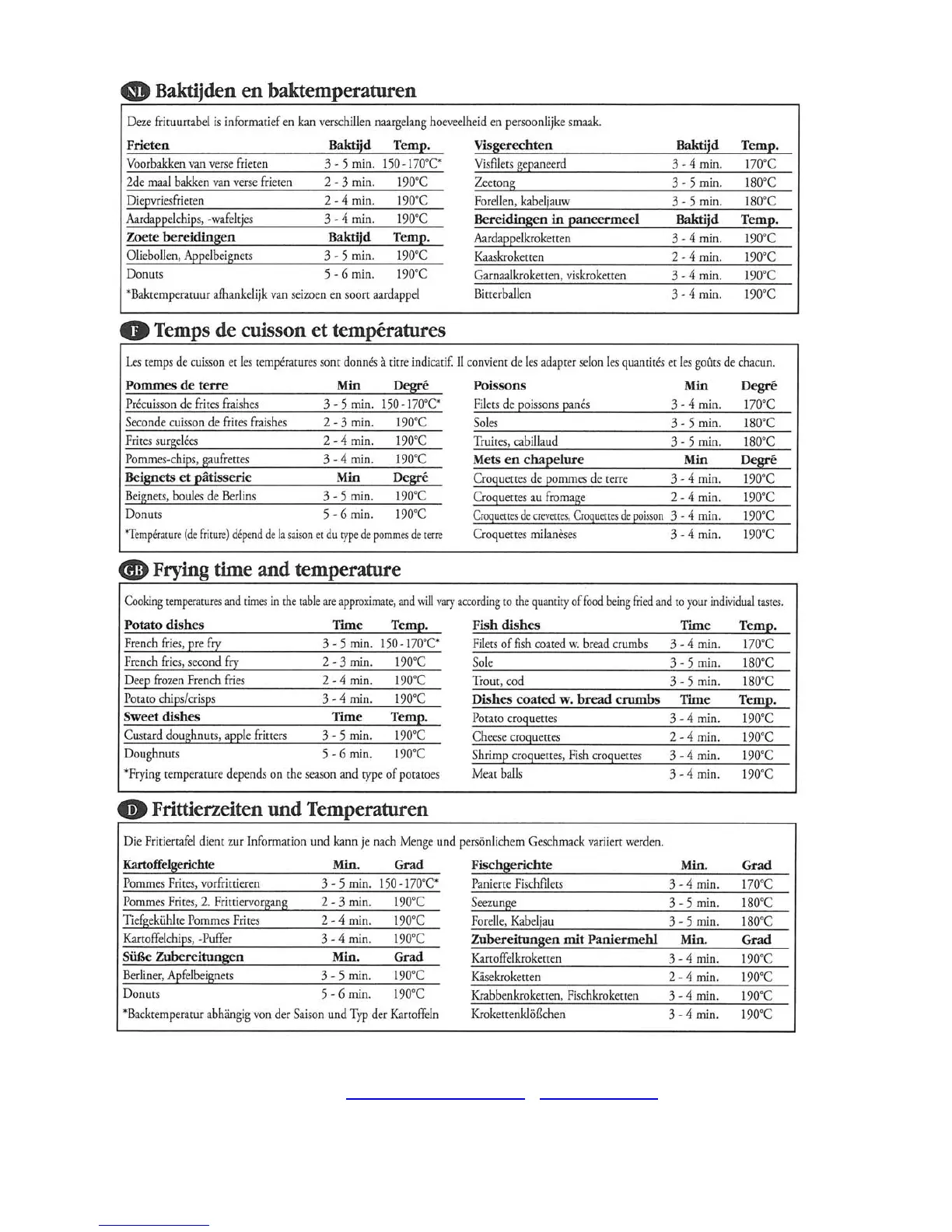 Fritel FF1400 - Frying Time and Temperature