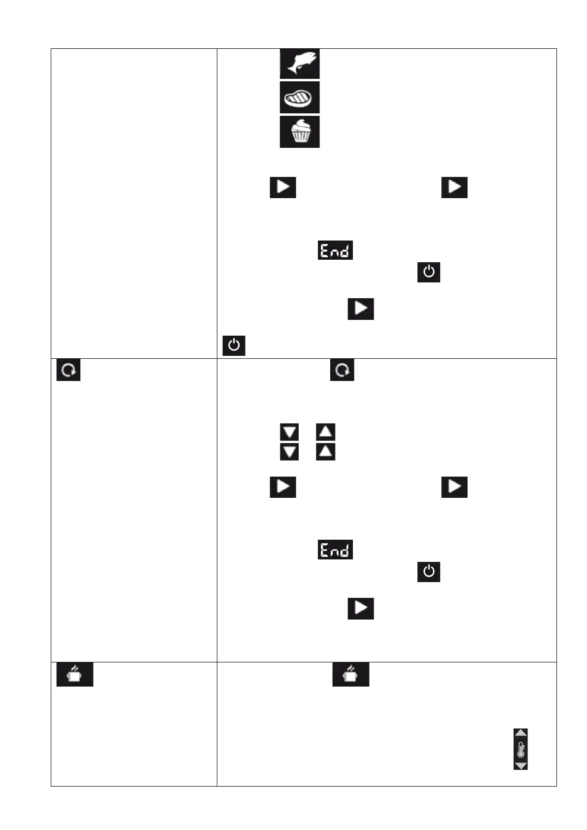 Appuyez sur le symbole pour maintenir la nourriture chaude.