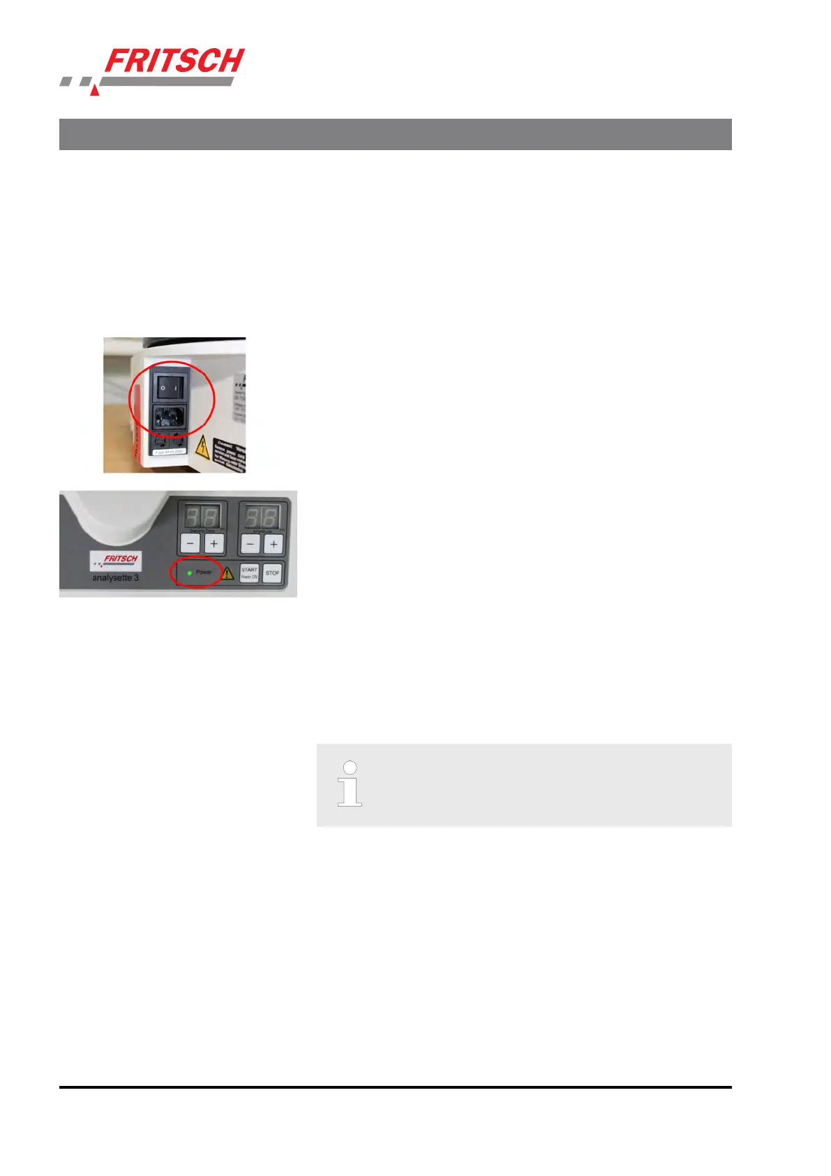 n Switch on the device with the main switch on the back of the device.