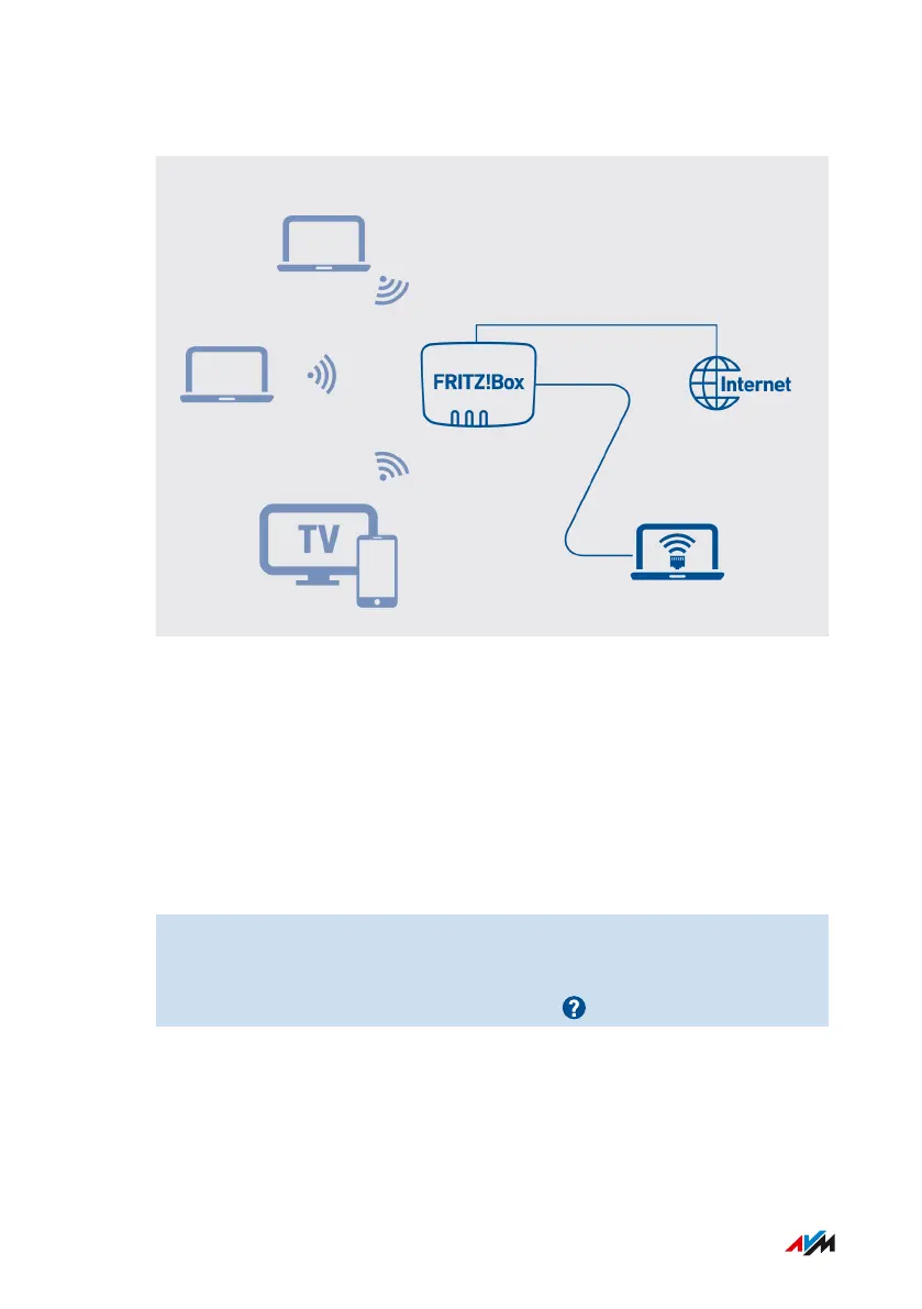 • The FRITZ!Box establishes its own connection to the internet. It is