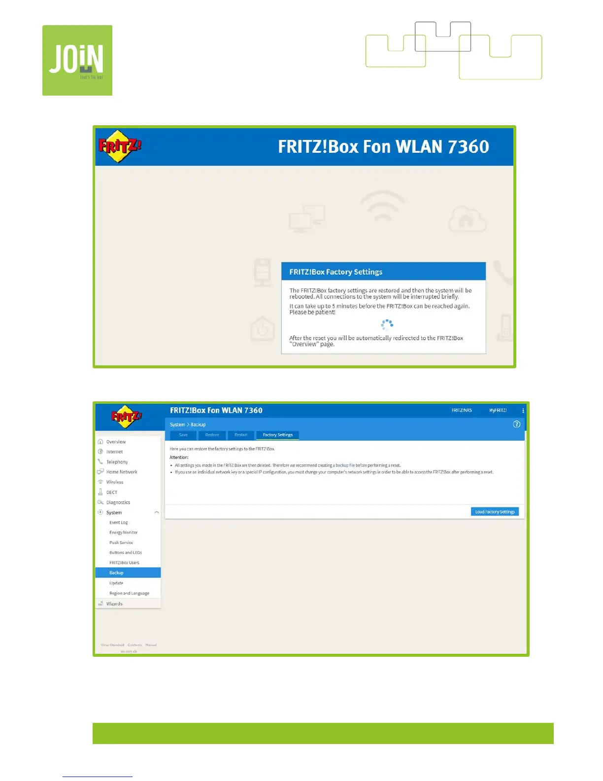 Fritz!Box 7360 - Factory Settings and System Backup; Creating a System Settings Backup