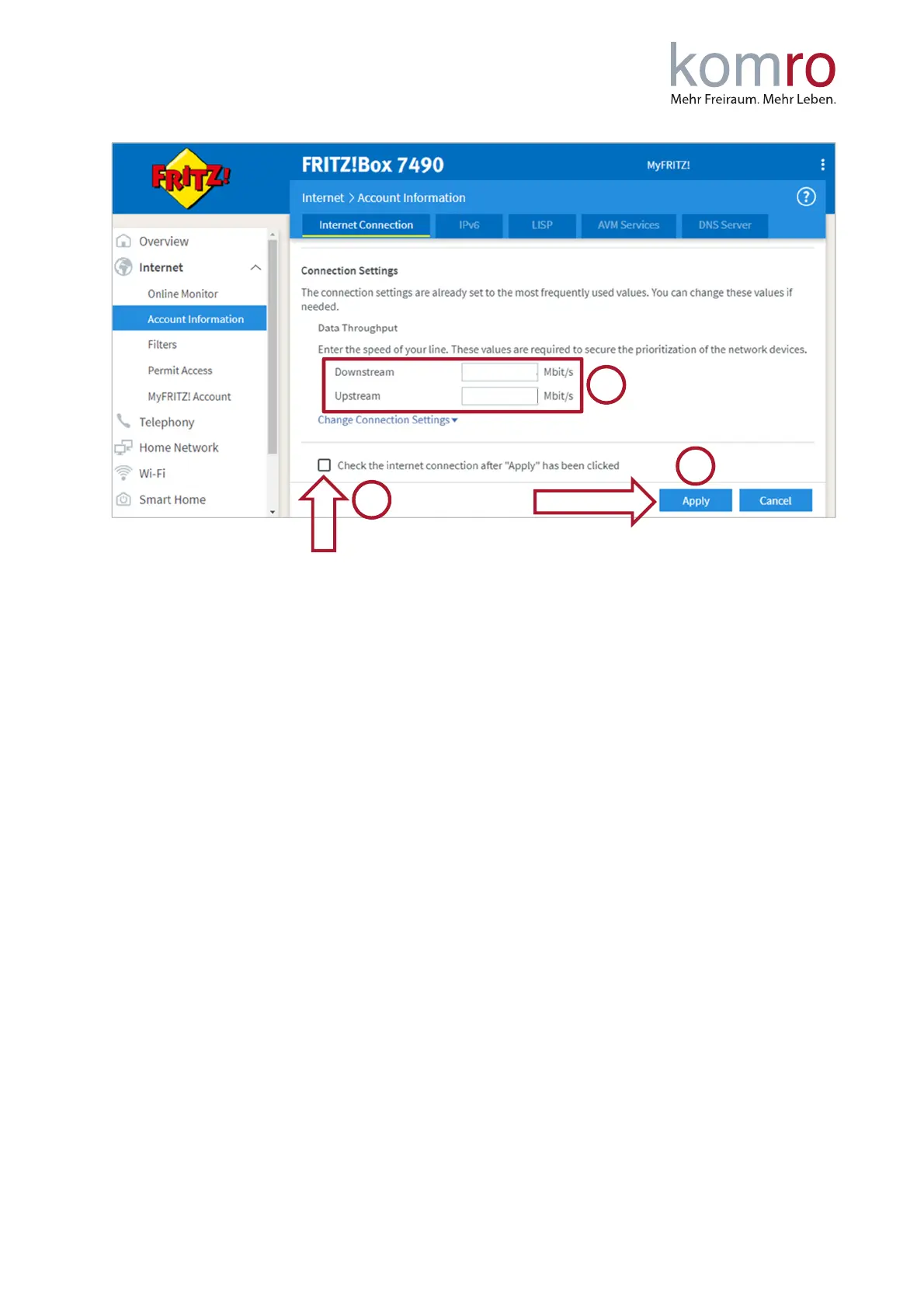 The Internet phone numbers are set up automatically on FRITZ!Boxes received from komro. If you use