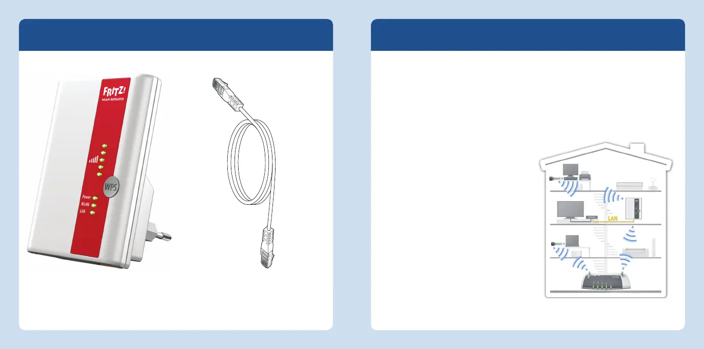 FRITZ!WLANRepeater élargit le rayon d’action de votre réseau local sans fi l. Pour ce