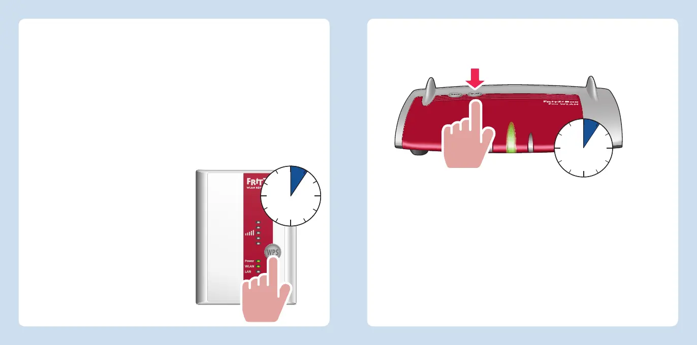 1. Enfoncez la toucheWPS de votre FRITZ!WLANRepeater jusqu’à ce que la diode