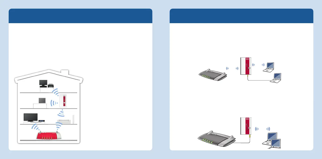 FRITZ!WLAN Repeater 450E kan in twee verschillende bedrijfsmodi werken: