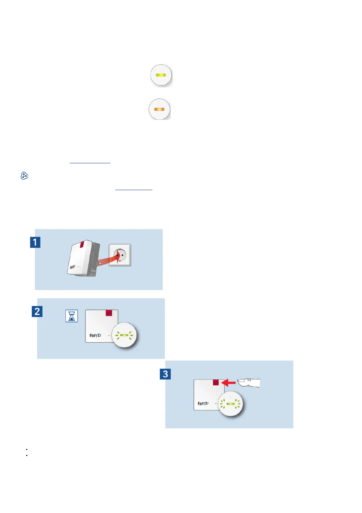 2. Wait until the LED starts slowly flashing green. As soon as the LED slowly flashes green, the FRITZ! The repeater is ready for a connection.