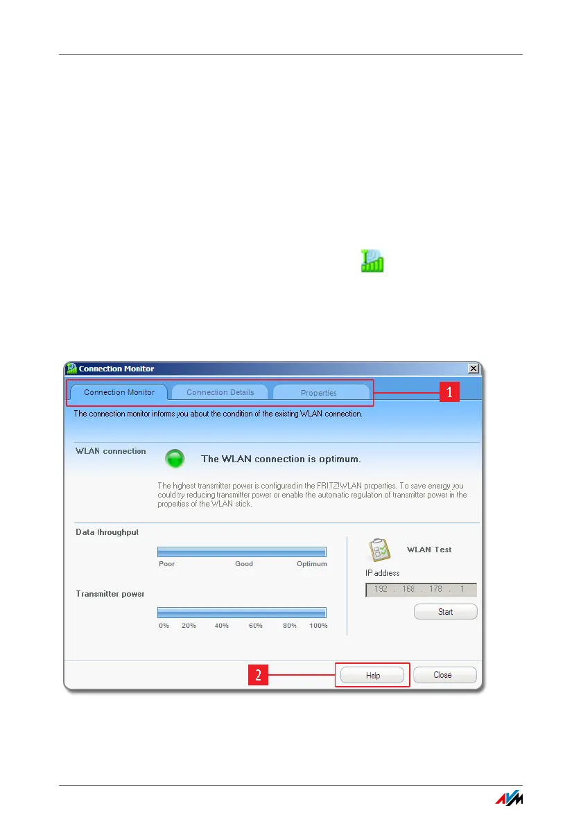 FRITZ!WLAN starts. The “Connection Monitor” tab is active.
