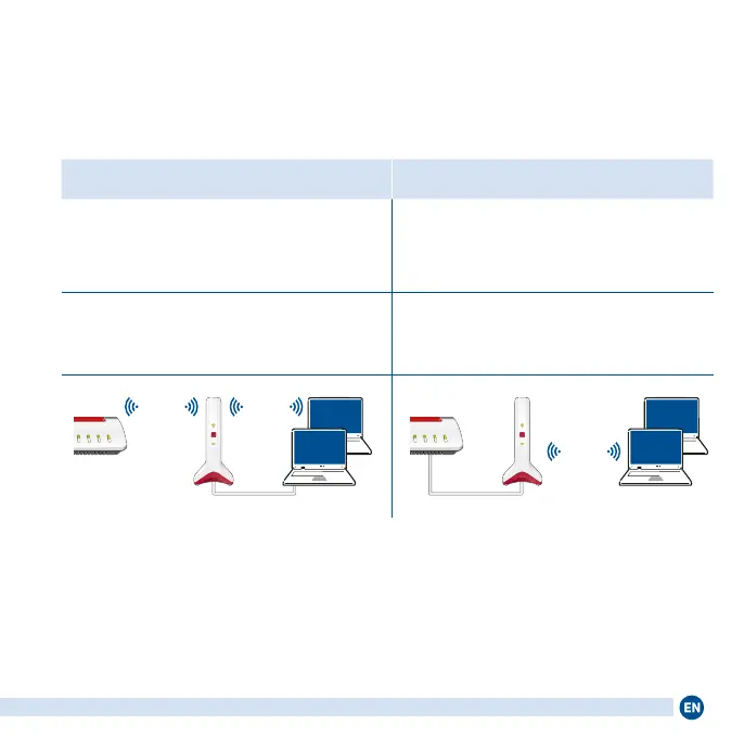 You can connect the FRITZ!Repeater6000 with a FRITZ!Box via Wi-Fi or using