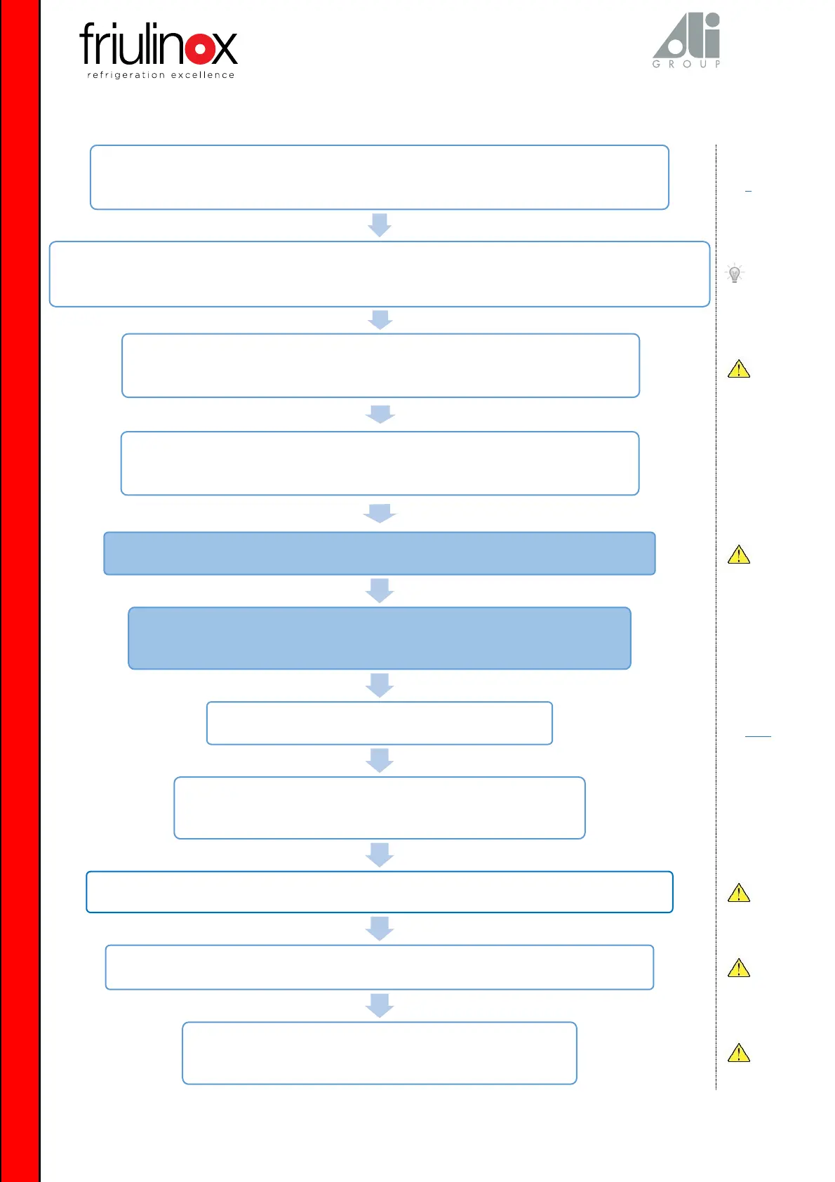 1. Make sure that the equipment is installed with a recommended inclination of 2% towards the door, to help
