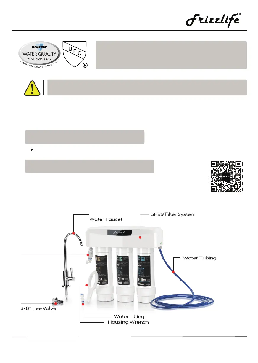 Thank you for purchasing the Frizzlife 3-Stage Under Sink Water Filtration System.