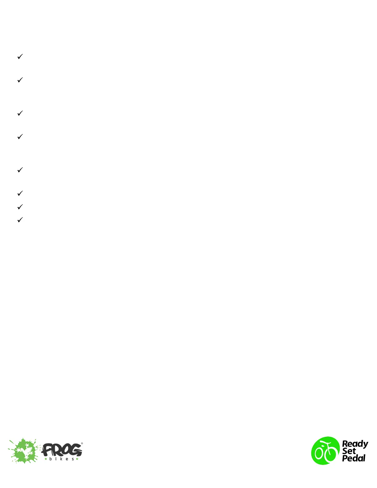All Frog bikes have undergone pre-delivery inspections by both Frog and Ready, Set, Pedal. However,