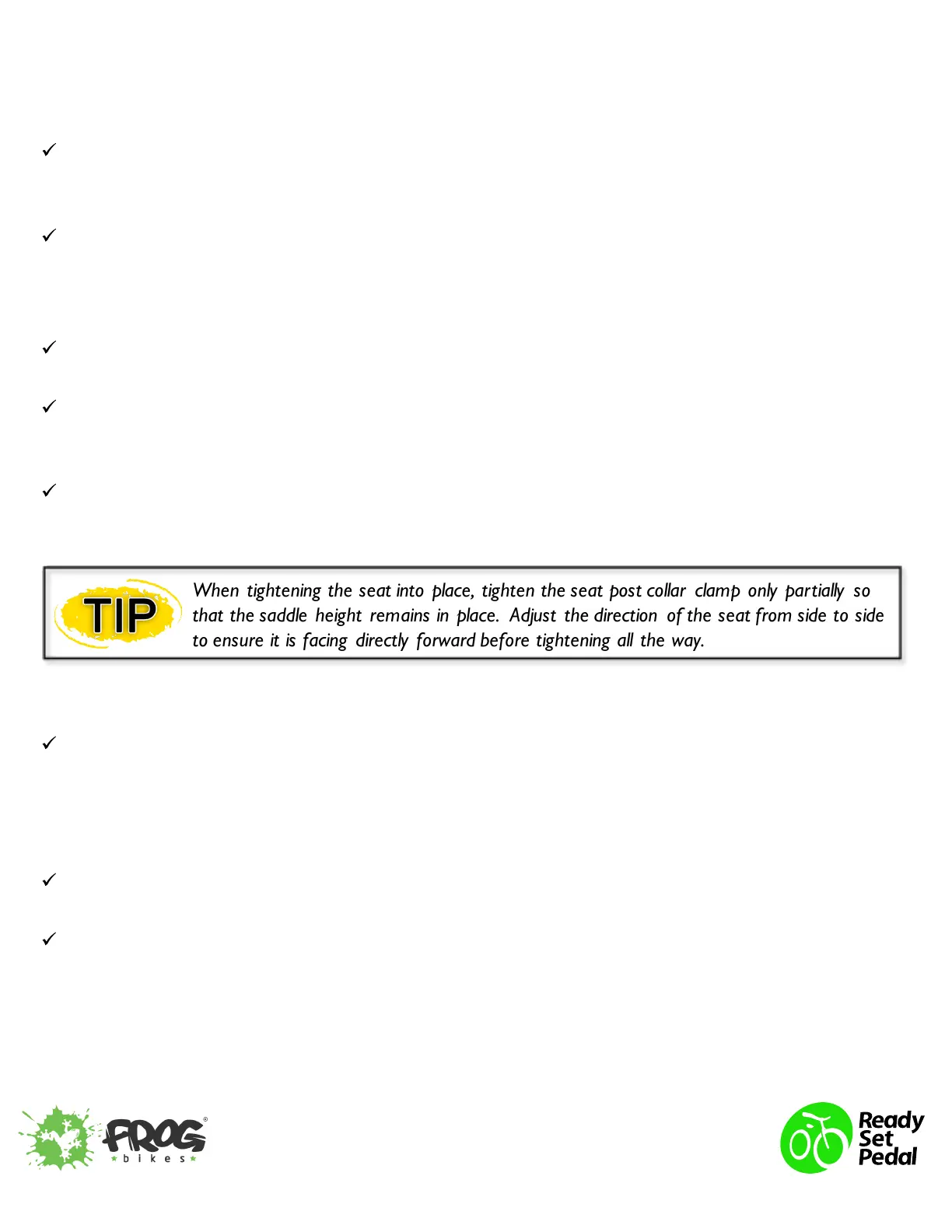 ground when seated on the saddle. As your child becomes more proficient, the saddle height can
