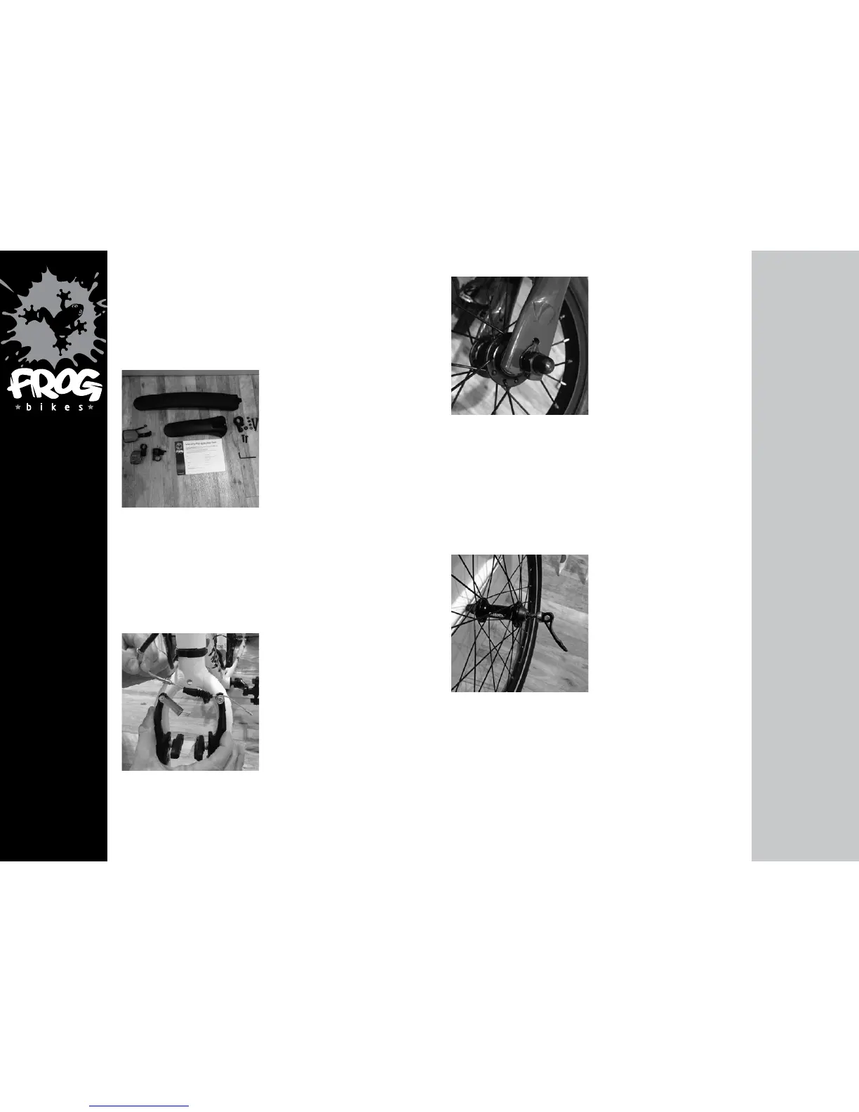 For the Tadpole, Frog 43 and Frog 48, place the front wheel axle in