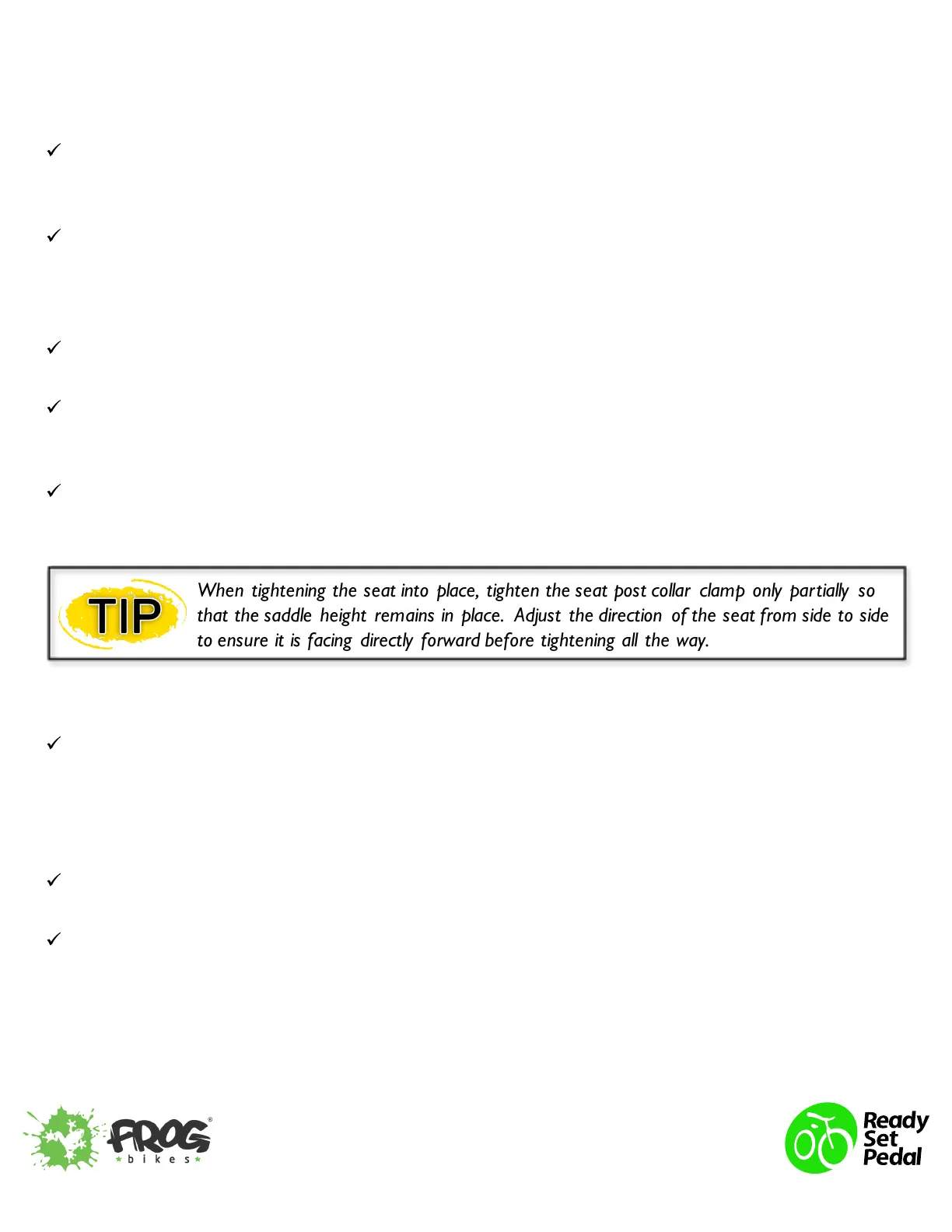 that the saddle height remains in place. Adjust the direction of the seat from side to side
