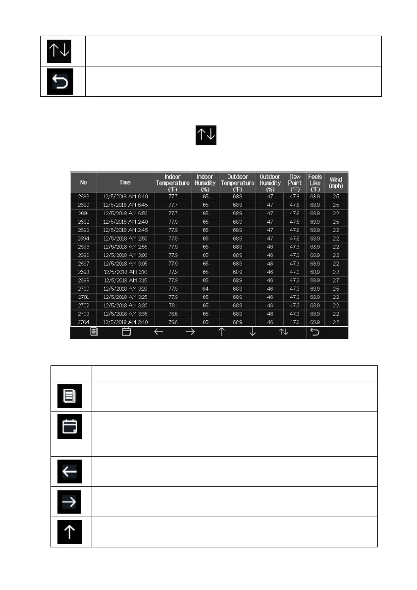 Press this key to enter particular page of the history data. Each