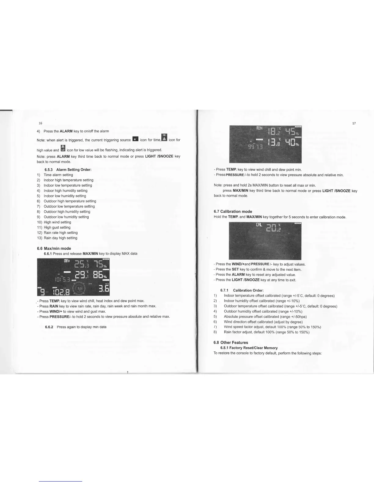 Froggit WH3000 - Alarm Mode Operation (continued); Alarm Setting Order; Max;Min Mode Operations; Calibration Mode Operations