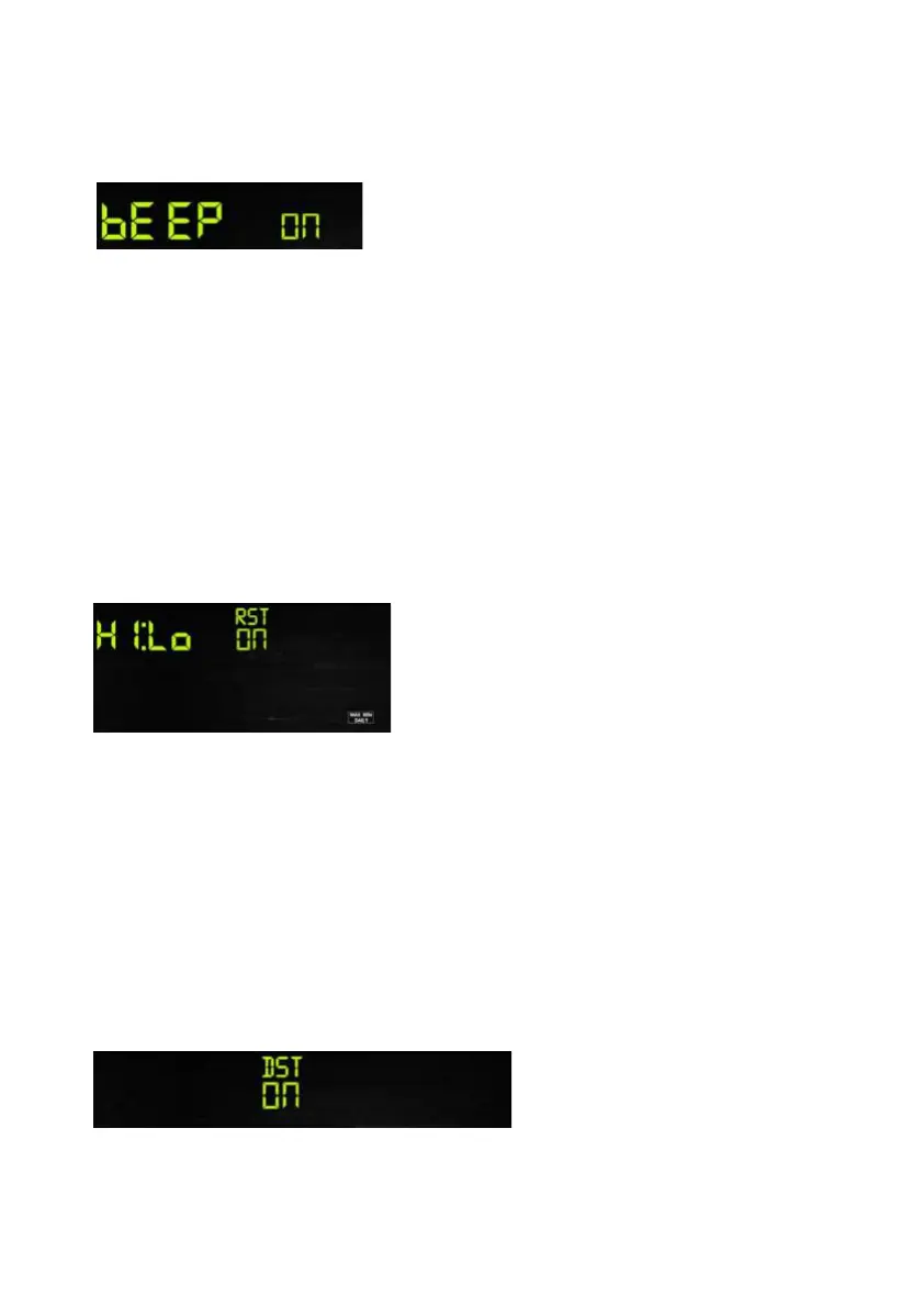 - Press the SET key for 2 seconds to select the beep section, ON/OFF