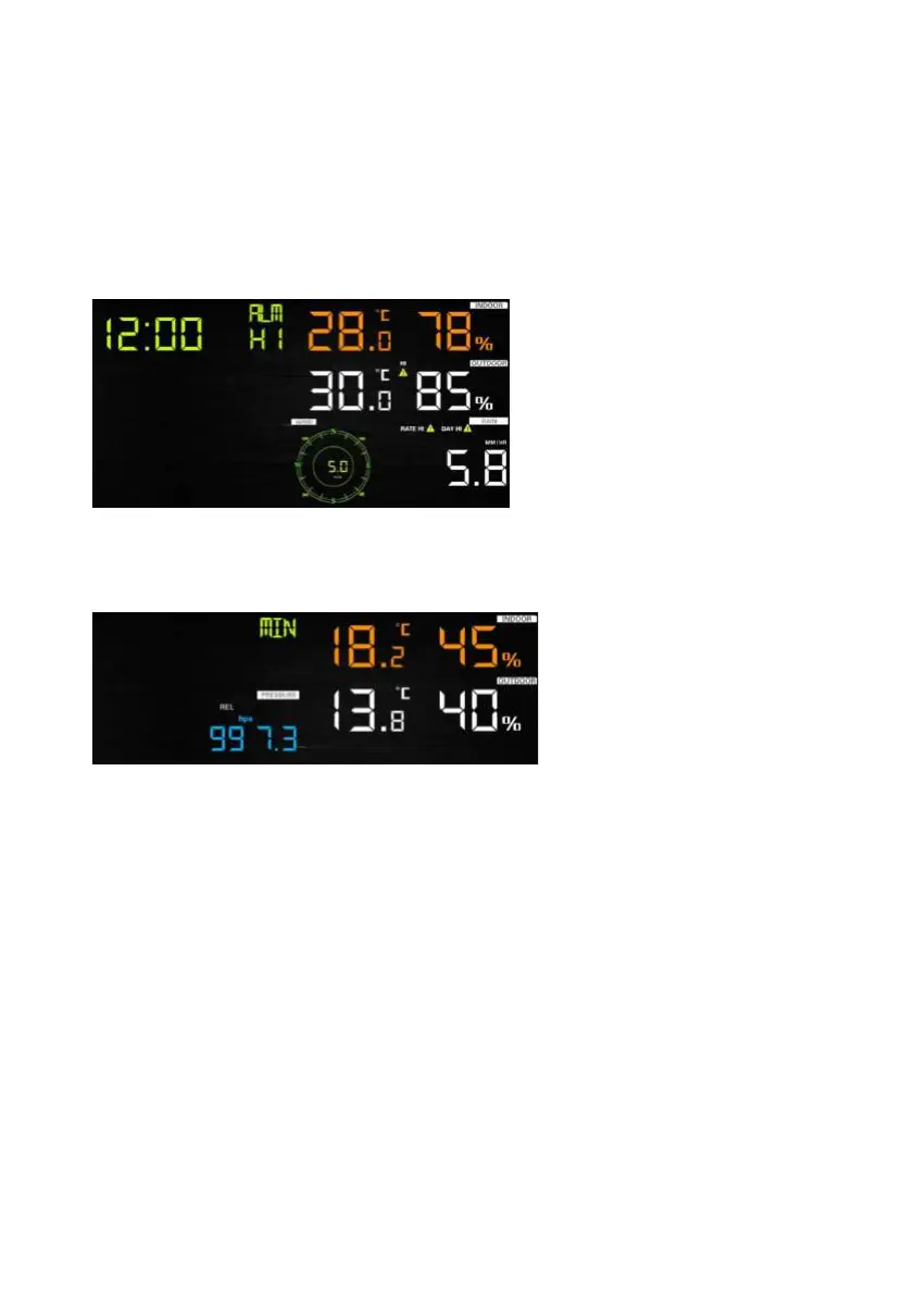 - Press RAIN key to select display rate or day rain alarm data.