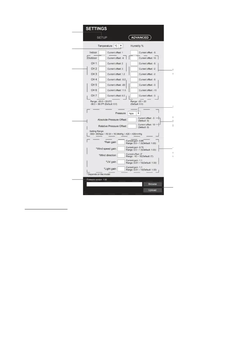 1. the user can enter the offset and/or gain values for various