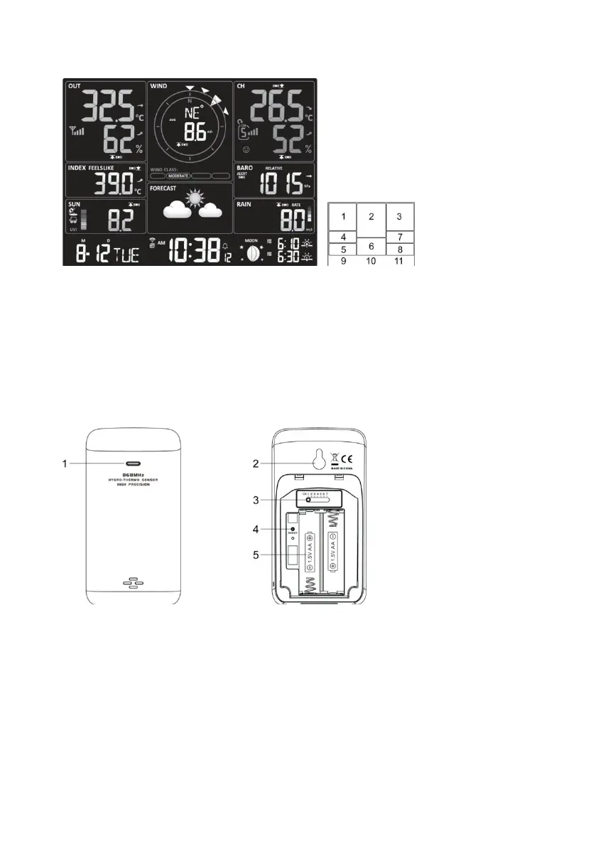 2 Wind direction & speed 8 Rainfall & Rain rate