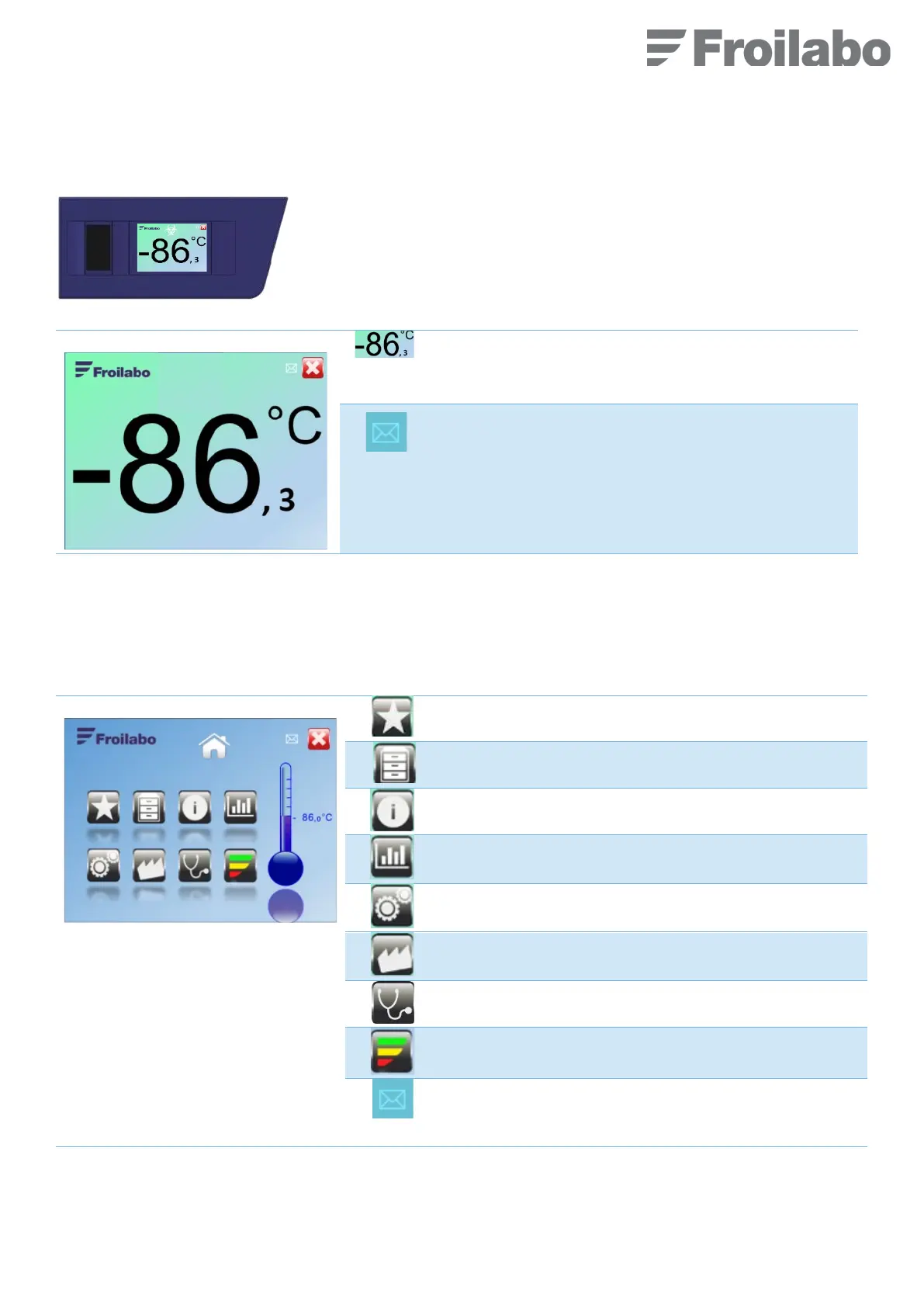 When the freezer is in use, the screen on the left is permanently displayed.