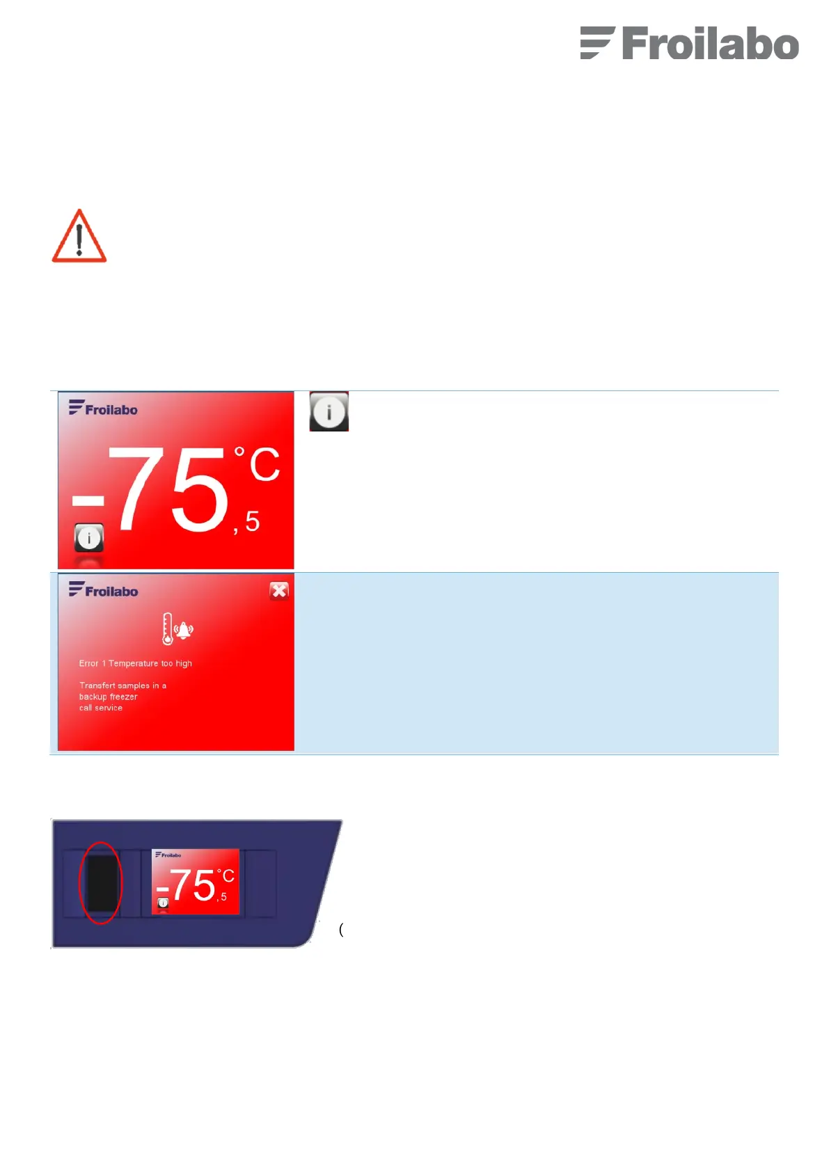 The high temperaure alarm is inhibated during the first decrease of the freezer and is activated when the freezer reach