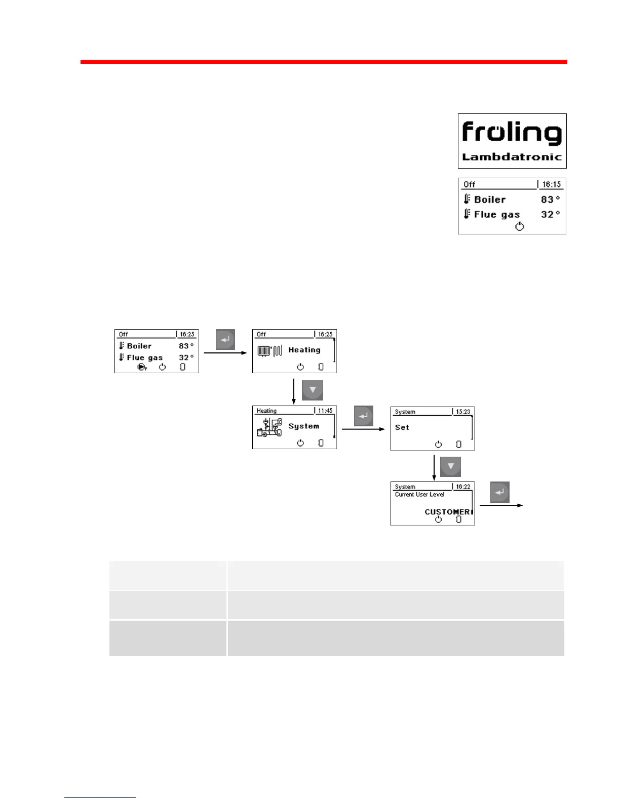 User Levels. To change to another level it is necessary to enter