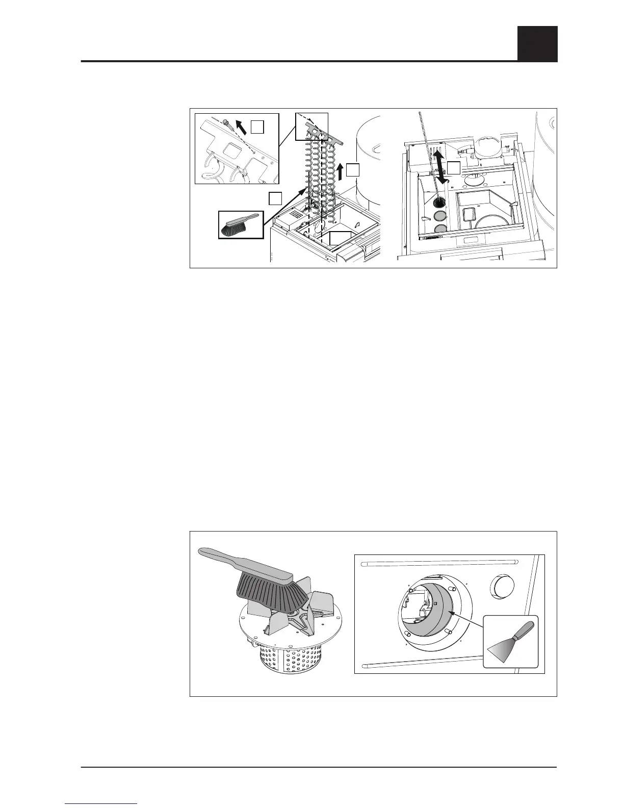 ❒ Clean the heat exchanger pipes with cleaning brush provided