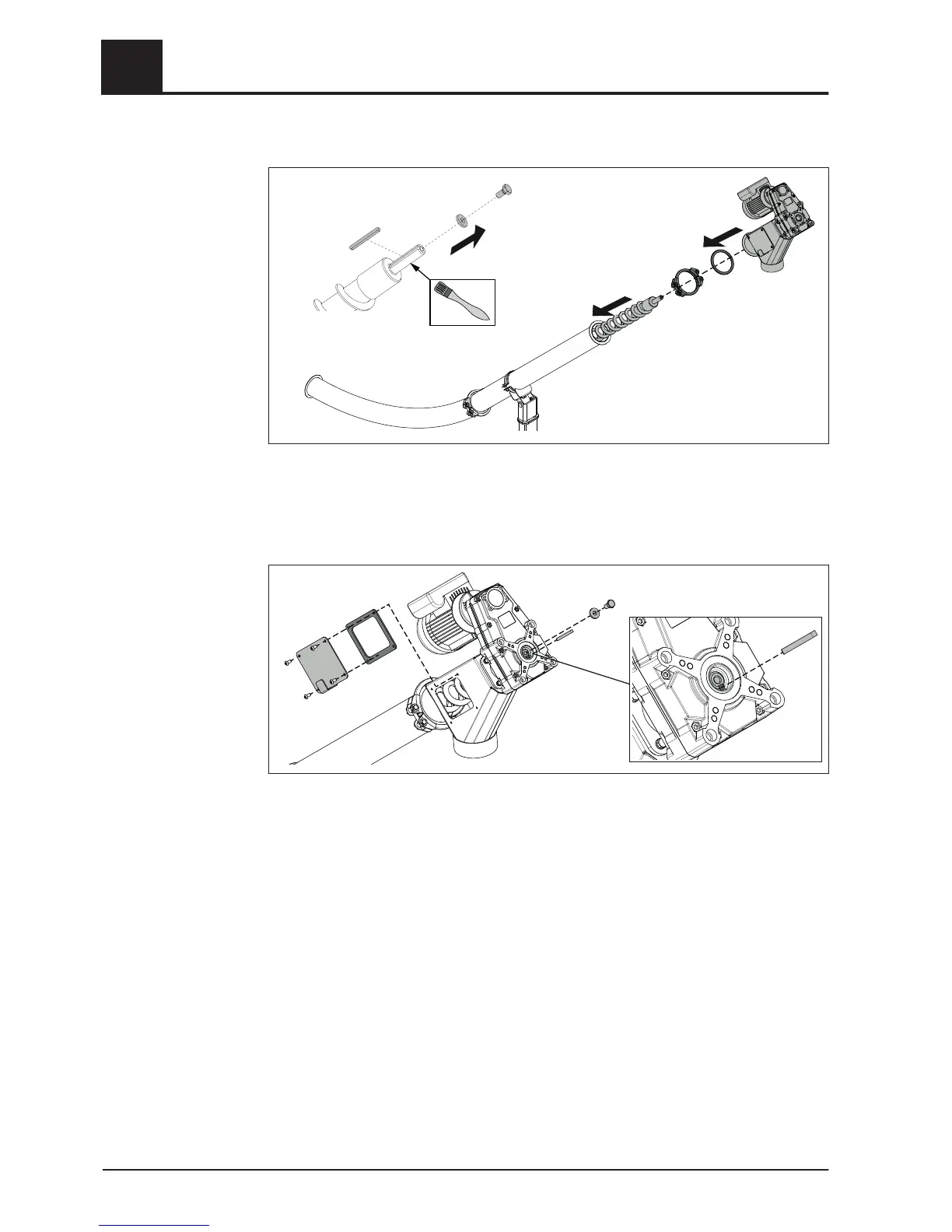 ❒ Assemble the drive unit and seal onto the hose with the tension ring