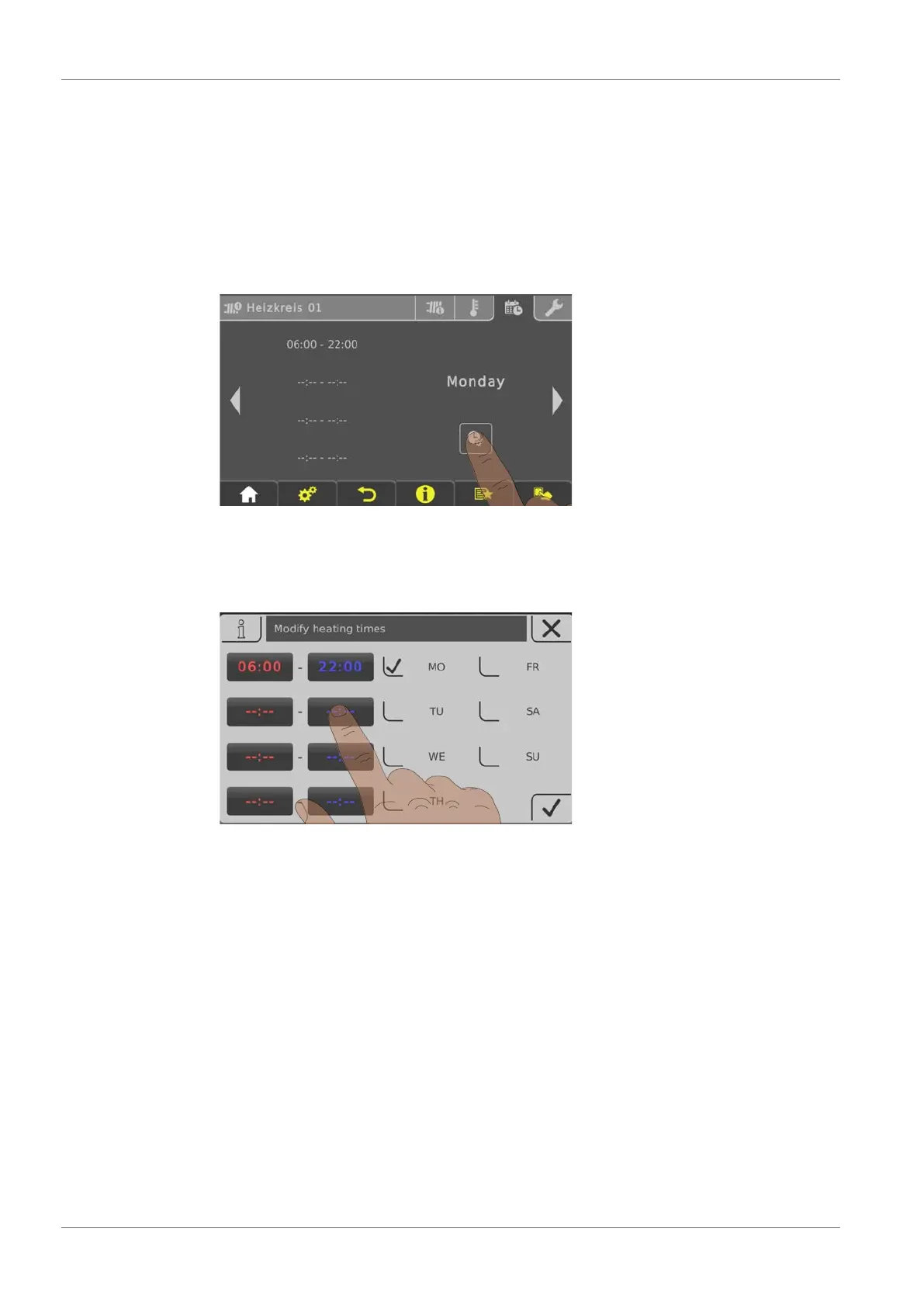The desired time window for the component can be set in the "Times" tab in the individual menus of the heating