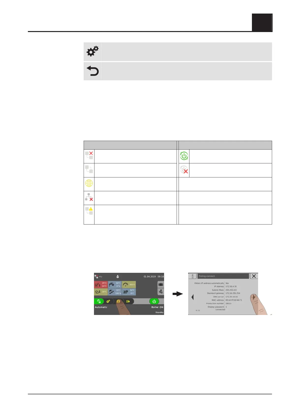 touch display. Tap on these icons to open the “Connection Centre”. In the menu, the