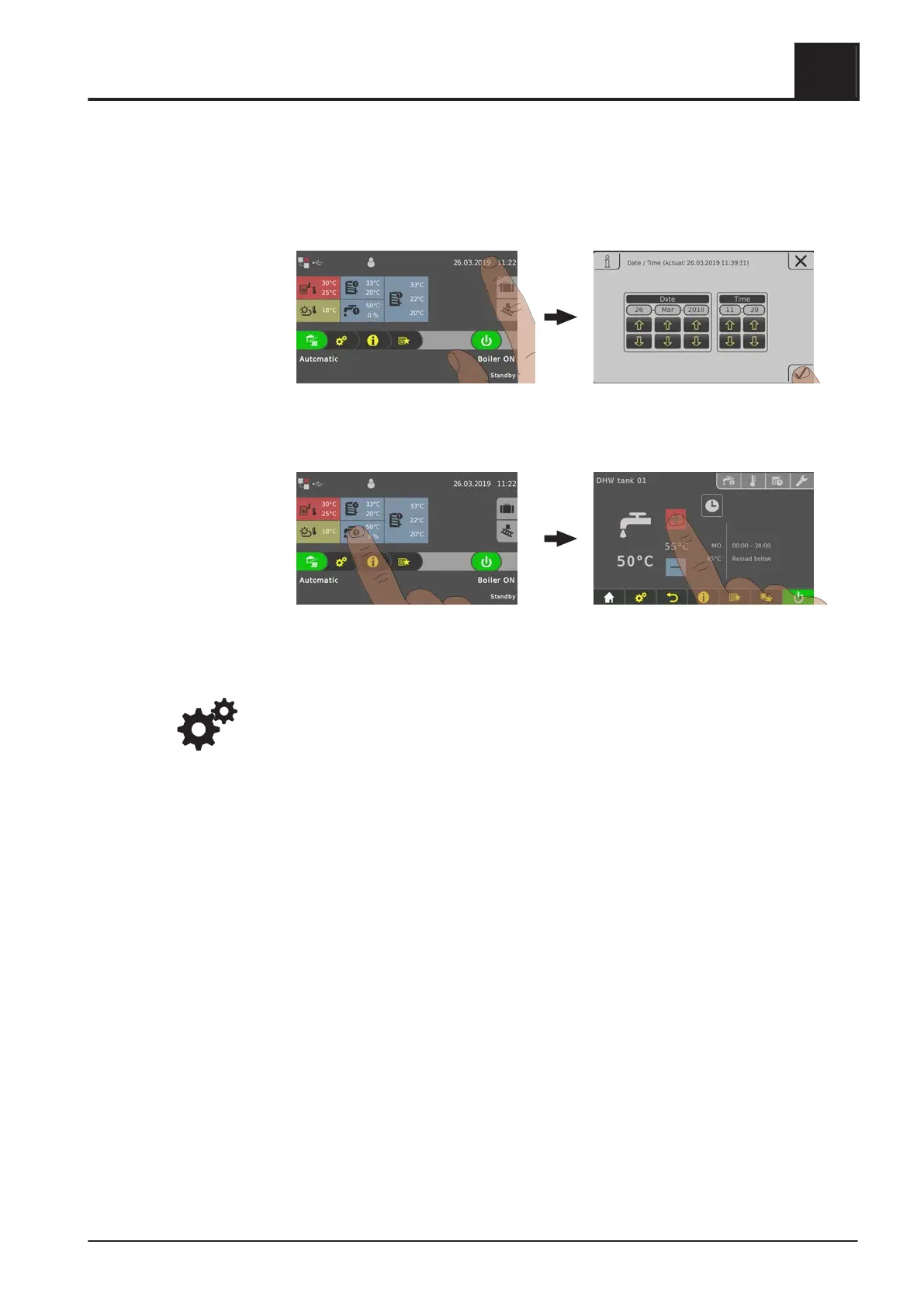 Operate the boiler using the touch display