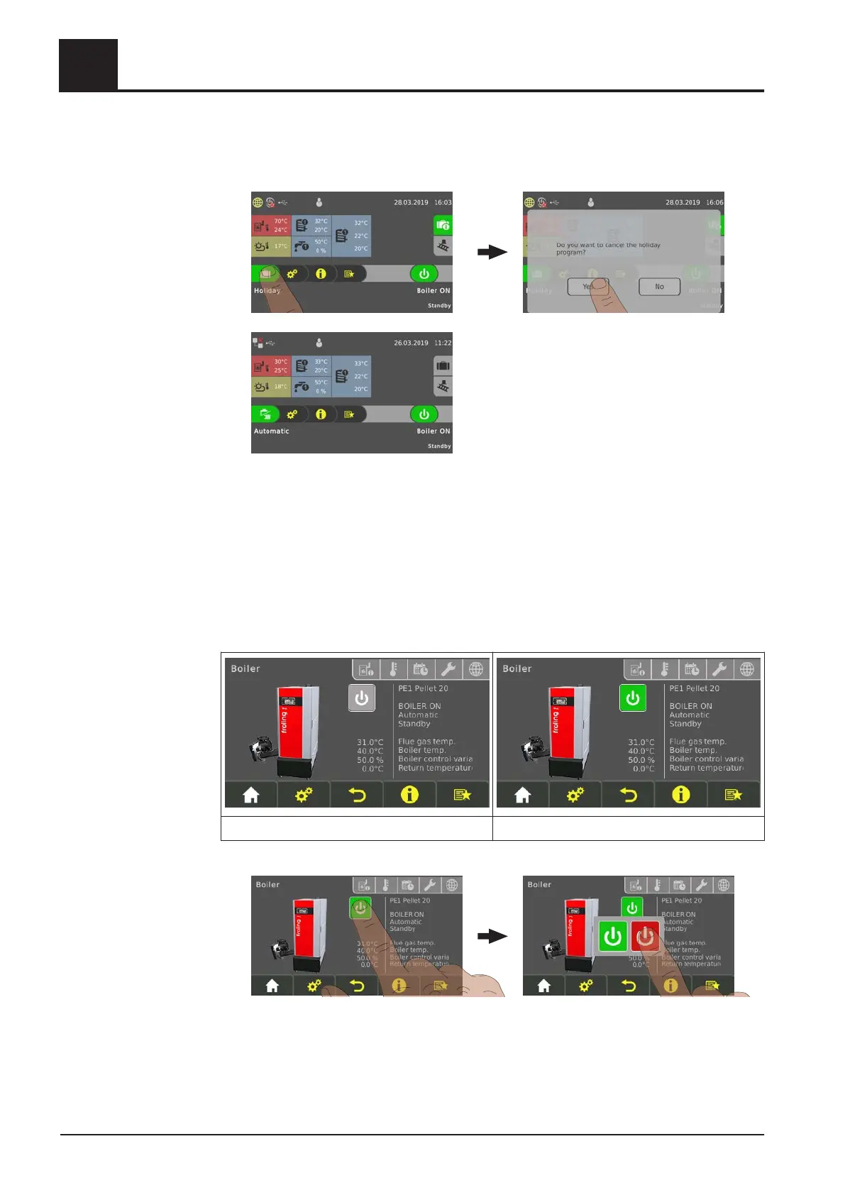❒ Switch the boiler ON/OFF by tapping on the current operating status
