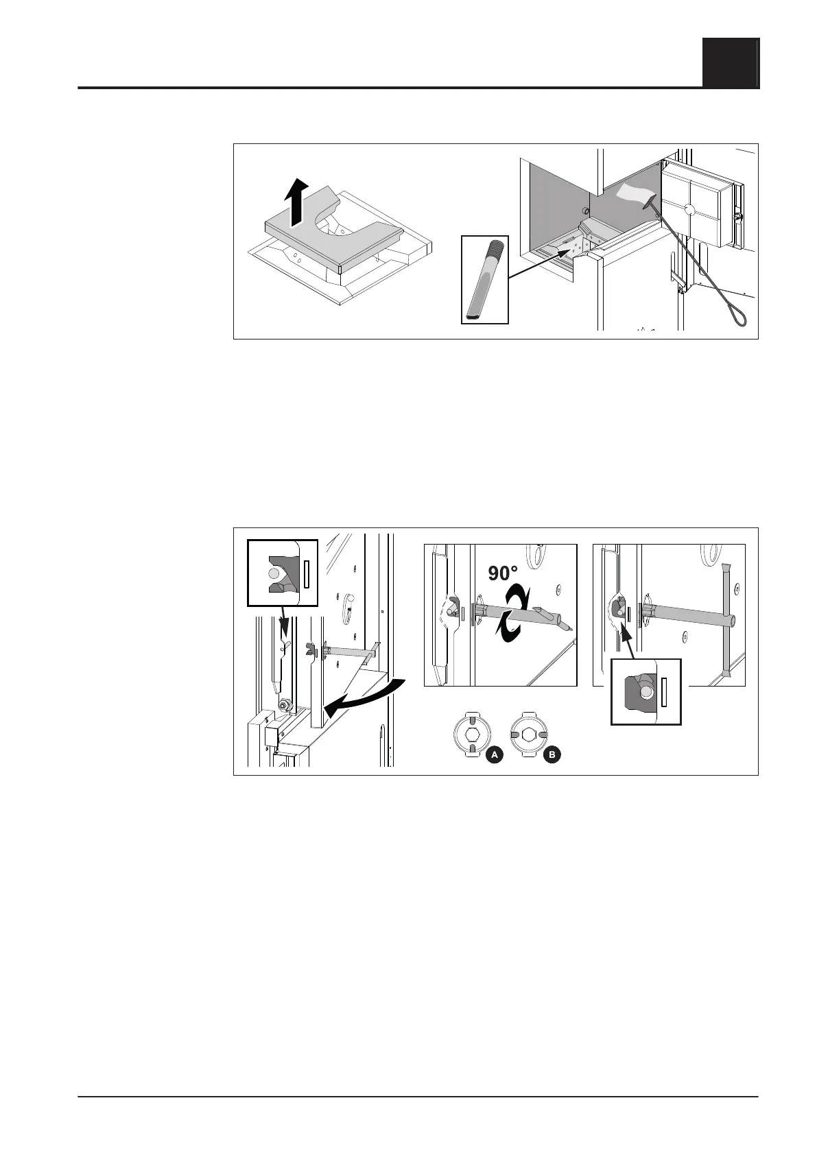 ❒ Close the combustion chamber door by turning the Allen wrench (90°)